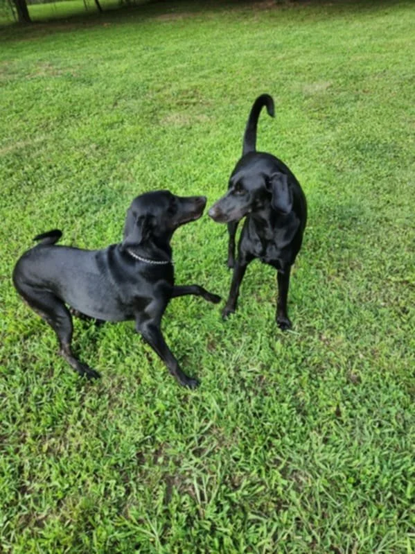 🖤 Meet Angela & Gia – Sisters by Birth, Best Friends by Heart Breed: Black Lab mixes Age: 9–10 months Weight: Angela – 45 lbs | Gia – 40 lbs Health: Spayed, fully vaccinated, heartworm negative, microchipped, on monthly prevention Angela and Gia are two bright, affectionate souls who’ve already overcome so much. Rescued from a shelter in heartbreaking condition, these sisters were skin and bones—but thanks to their loving foster family, they’ve blossomed into playful, loving, confident pups ready for their next chapter. These girls are all about love. Their tails wag when you talk, they melt into cuddles, and they thrive with attention and praise. They’re food- and treat-motivated, quick learners who mastered “sit” in minutes and are working hard on other manners like “come” and not jumping up when excited. They’re crate trained, have had no accidents, and are already understanding the rhythms of home life. Angela and Gia would love to stay together, but they can be adopted separately if placed in homes with another friendly young dog for companionship and play. They’ve not been cat-tested yet but do great with other dogs and should do well with older children who understand puppy energy. What Angela & Gia need: • A loving home with a secure fenced yard for safe play • A family who enjoys training, playtime, and cuddling • Either adopted together, or each adopted to homes with another young dog • Continued guidance as they grow into the smart, loyal girls they’re destined to be These girls are pure sunshine—resilient, sweet, silly, and grateful. Whether together or apart, Angela and Gia will light up the hearts and homes lucky enough to welcome them. To adopt, both complete our pre-adoption application